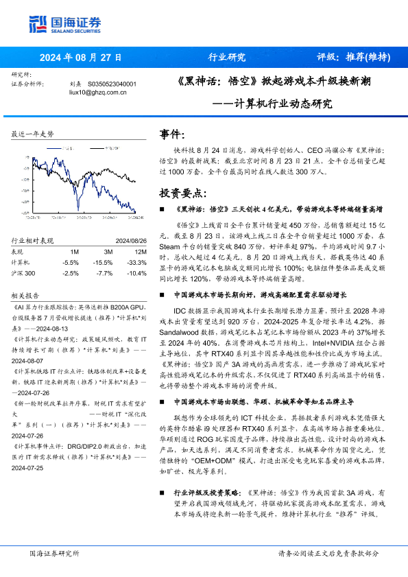 【国海证券】【20240827】计算机行业动态研究:《黑神话:悟空》掀起游戏本升级换新潮-15页