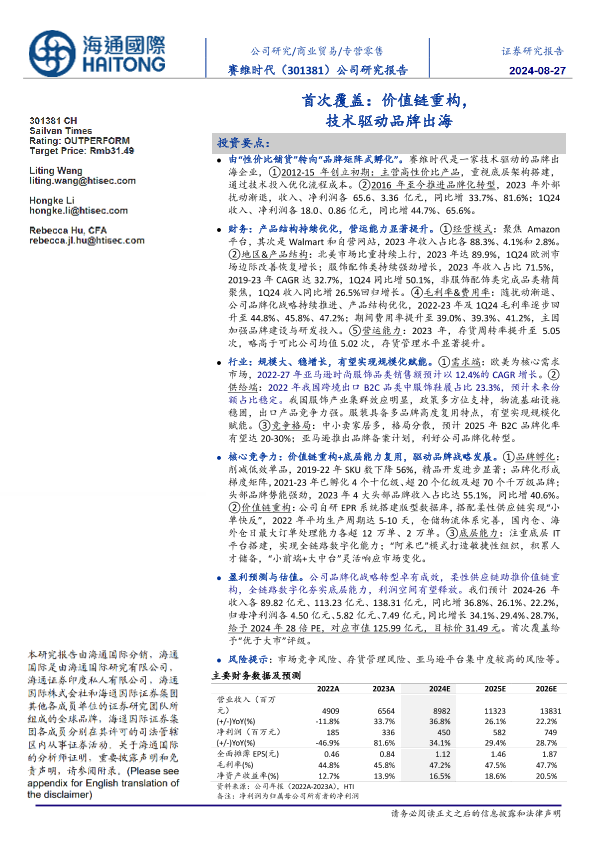 【海通国际】【20240827】赛维时代(301381)首次覆盖:价值链重构,技术驱动品牌出海-33页