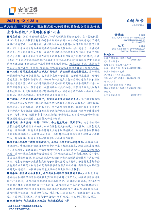 【安信证券】【20211228】全市场科技产业策略报告第128期:从产品形态、下游客户、商业模式看电子测量仪器行业公司发展情况-51页