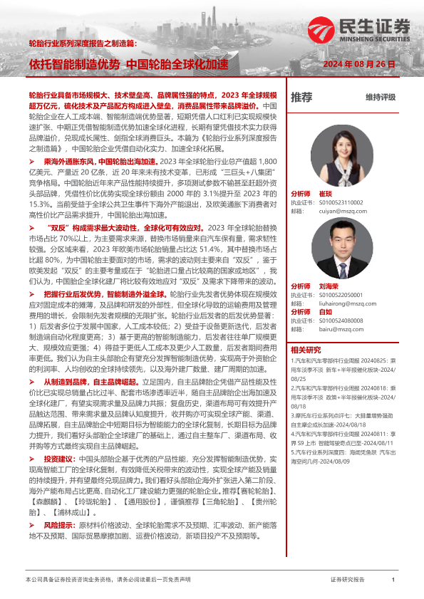【民生证券】【20240826】轮胎行业系列深度报告之制造篇:依托智能制造优势,中国轮胎全球化加速-58页