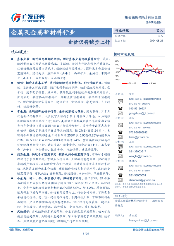 【广发证券】【20240825】金属及金属新材料行业:金价仍将稳步上行-24页