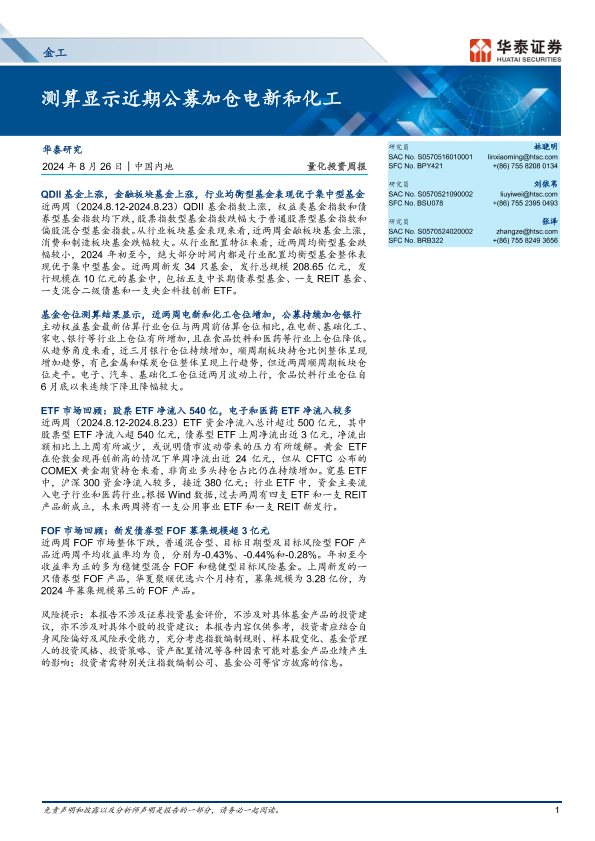 【华泰证券】【20240826】量化投资周报:测算显示近期公募加仓电新和化工-11页