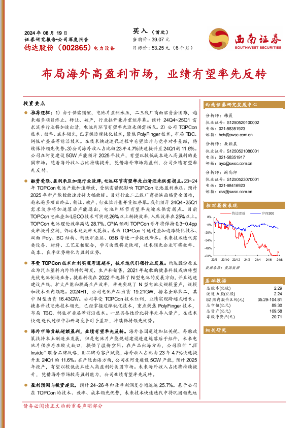 【西南证券】【20240819】钧达股份(002865)布局海外高盈利市场,业绩有望率先反转-41页