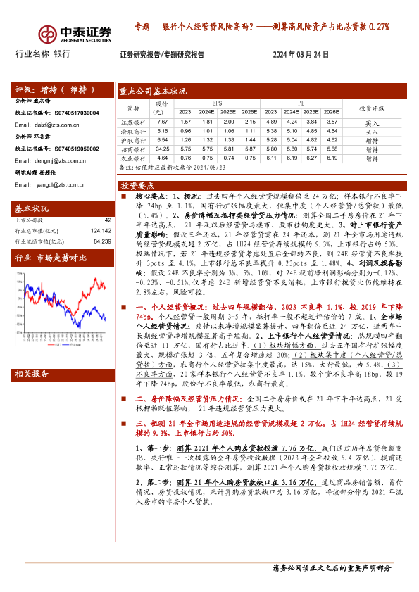 【中泰证券】【20240824】银行业专题|银行个人经营贷风险高吗?——测算高风险资产占比总贷款0.27%-23页