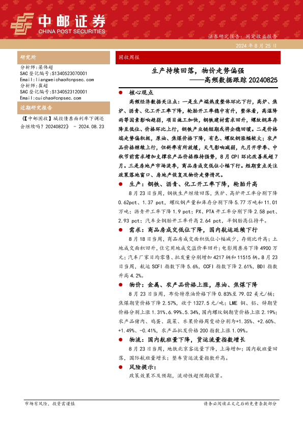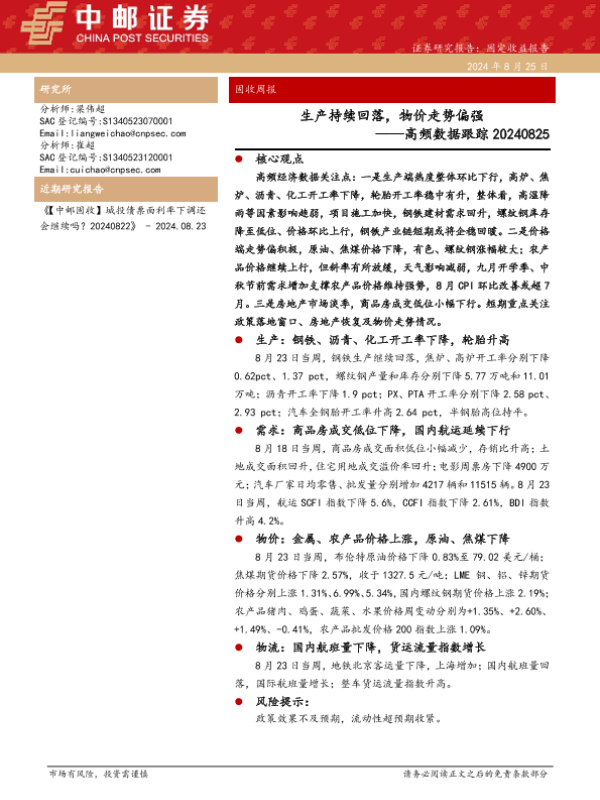 【中邮证券】【20240825】高频数据跟踪:生产持续回落,物价走势偏强-13页