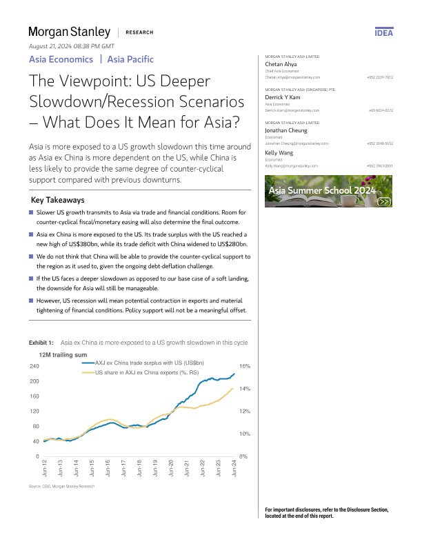 【Morgan Stanley】【20240812】The Viewpoint US Deeper Slowdown/Recession Scenarios – What Does It Mean for Asia?-11页