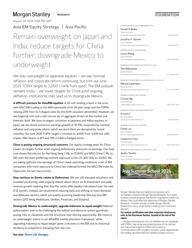 【Morgan Stanley】【20240819】Morgan Stanley-Asia EM Equity Strategy Remain overweight on Japan and India-31页