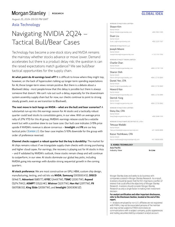 【Morgan Stanley】【2024】Navigating NVIDIA 2Q24 – Tactical Bull/Bear Cases-29页