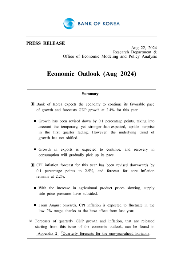 【Bank of Korea】【20240822】经济展望(2024年8月)-8页