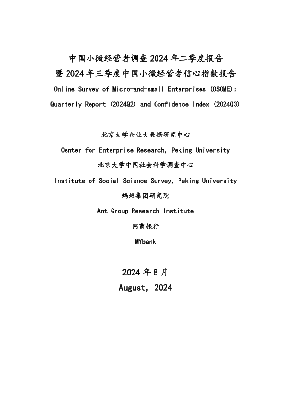 【北京大学企业大数据研究中心】【202408】中国小微经营者调查2024年二季度报告暨2024年三季度中国小微经营者信心指数报告-38页