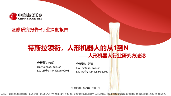 【中信建投证券】【20240902】人形机器人行业研究方法论:特斯拉领衔,人形机器人的从1到N-85页