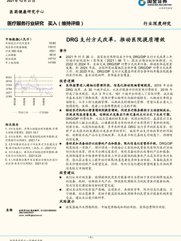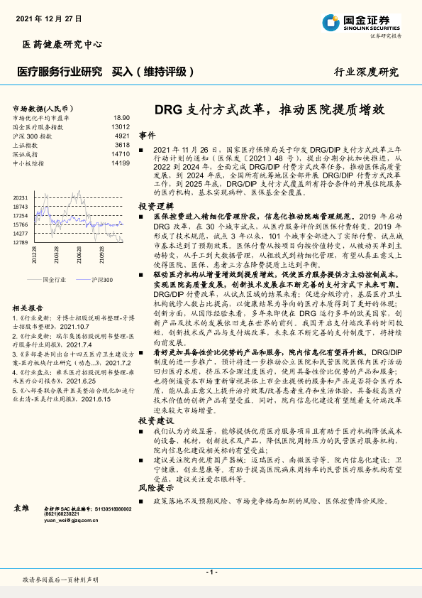 【国金证券】【20211227】医疗服务行业深度研究:DRG支付方式改革,推动医院提质增效-18页