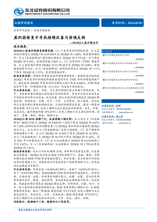 【东北证券】【20240902】2024Q2A股业绩点评:盈利弱修复中寻找持续改善与困境反转-29页