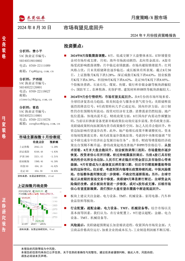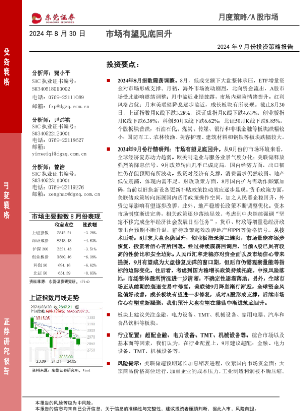 【东莞证券】【20240830】2024年9月份投资策略报告:市场有望见底回升-14页