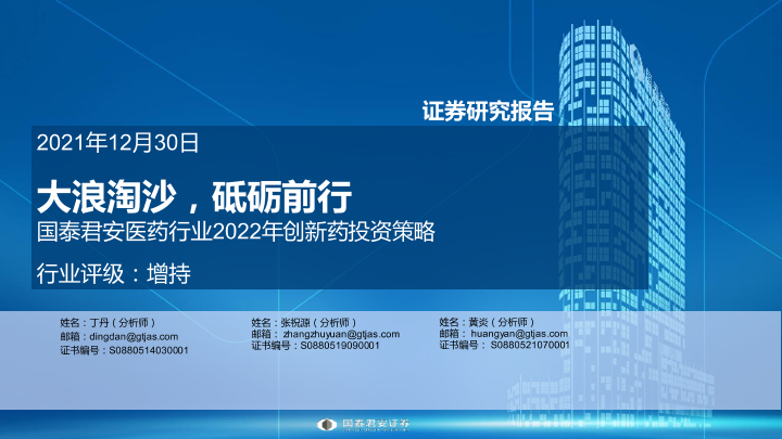 【国泰君安证券】【20211230】医药行业2022年创新药投资策略:大浪淘沙,砥砺前行-56页