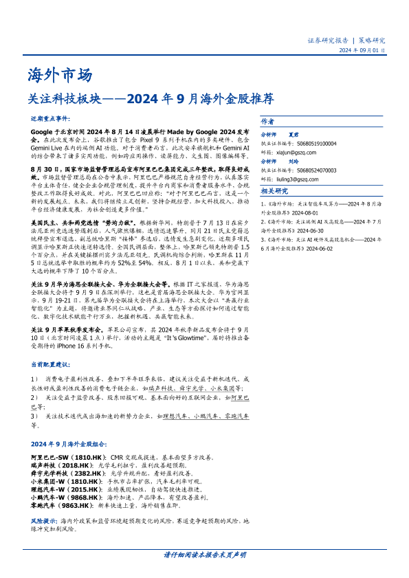 【国盛证券】【20240901】2024年9月海外金股推荐:关注科技板块-16页