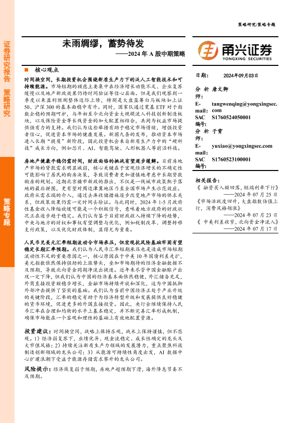 【甬兴证券】【20240903】2024年A股中期策略:未雨绸缪,蓄势待发-28页