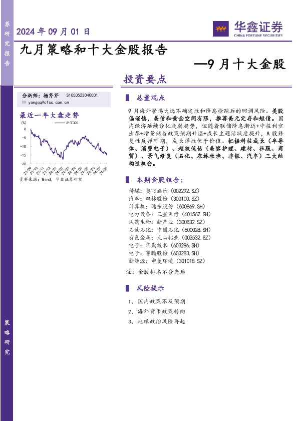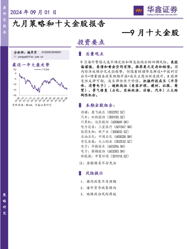 【华鑫证券】【20240901】9月十大金股:九月策略和十大金股报告-18页