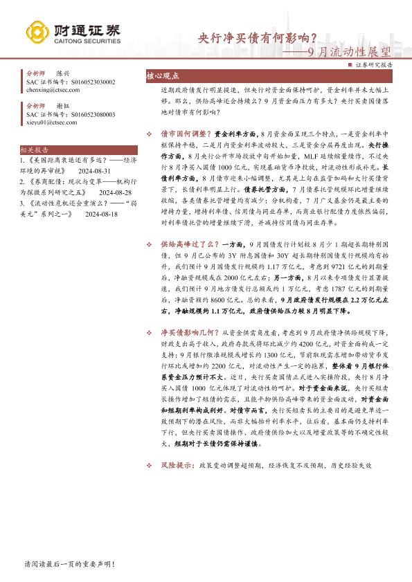 【财通证券】【20240902】9月流动性展望:央行净买债有何影响?-14页
