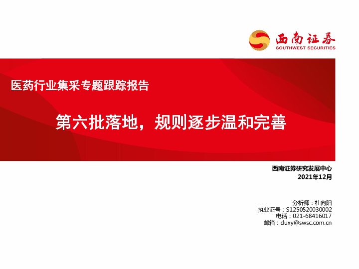 【西南证券】【20211229】医药行业集采专题跟踪报告:第六批落地,规则逐步温和完善-50页