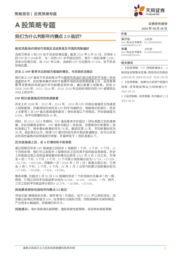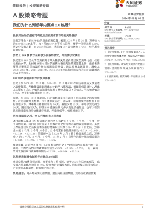 【天风证券】【20240905】A股策略专题:我们为什么判断年内赛点2.0临近?-17页