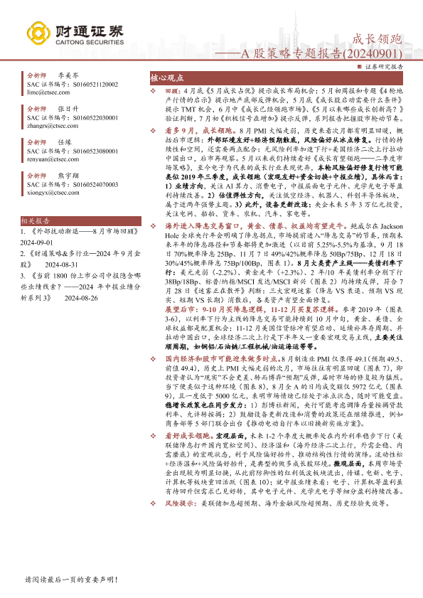 A股策略 宏观经济 市场预测 成长股 降息交易