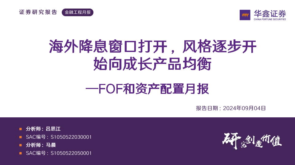 【华鑫证券】【20240904】FOF和资产配置月报:海外降息窗口打开,风格逐步开始向成长产品均衡-19页