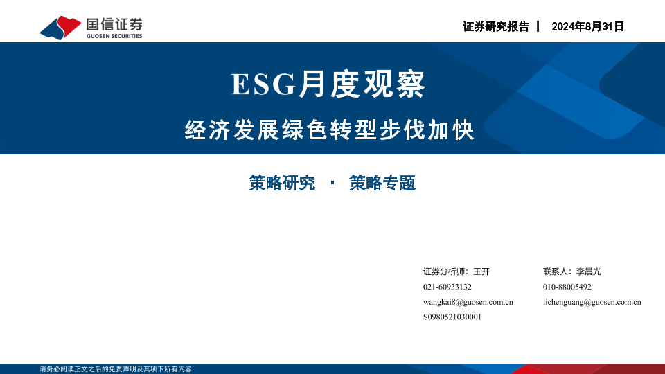【国信证券】【20240831】ESG月度观察:经济发展绿色转型步伐加快-20页