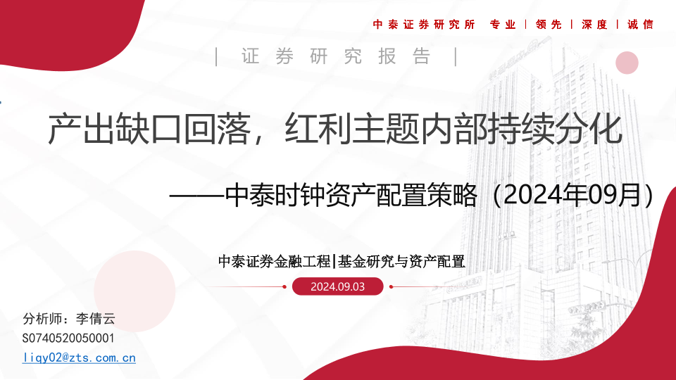【中泰证券】【20240903】中泰时钟资产配置策略(2024年09月):产出缺口回落,红利主题内部持续分化-26页