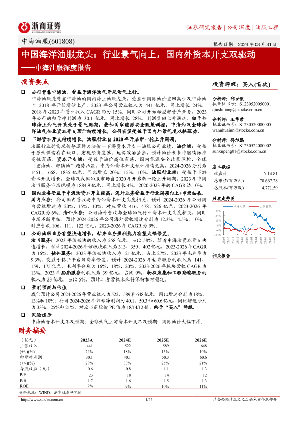 【浙商证券】【20240831】中海油服(601808)深度报告:中国海洋油服龙头,行业景气向上,国内外资本开支双驱动-45页