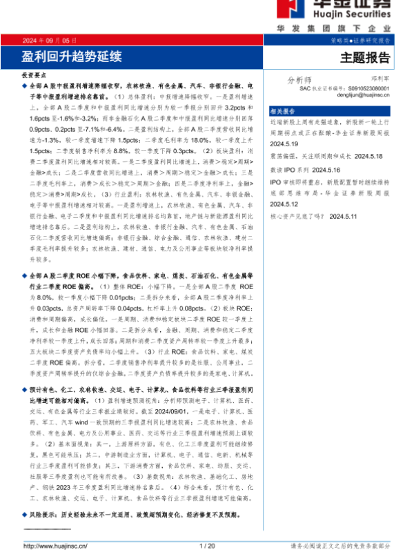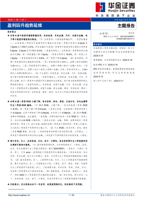 【华金证券】【20240905】主题报告:盈利回升趋势延续-20页