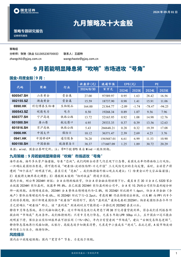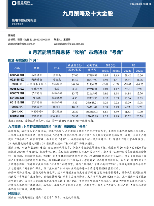 【国金证券】【20240901】九月策略及十大金股:9月若能明显降息将“吹响”市场进攻“号角”-22页