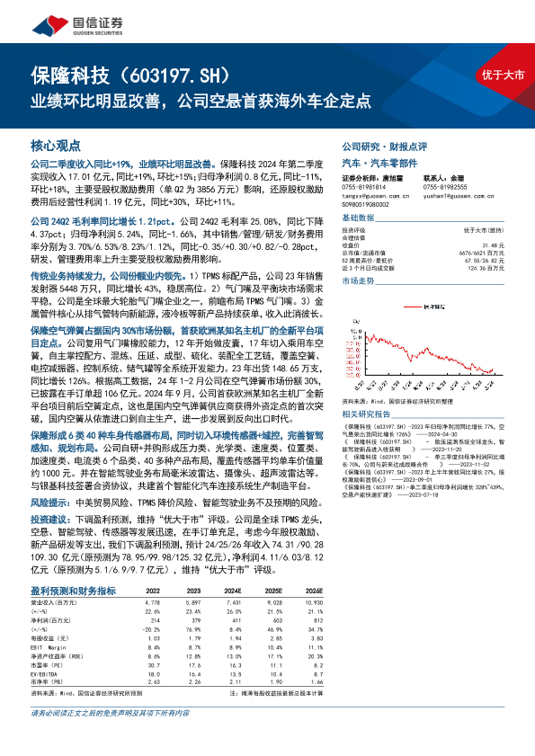 【国信证券】【20240905】保隆科技(603197)业绩环比明显改善,公司空悬首获海外车企定点-13页