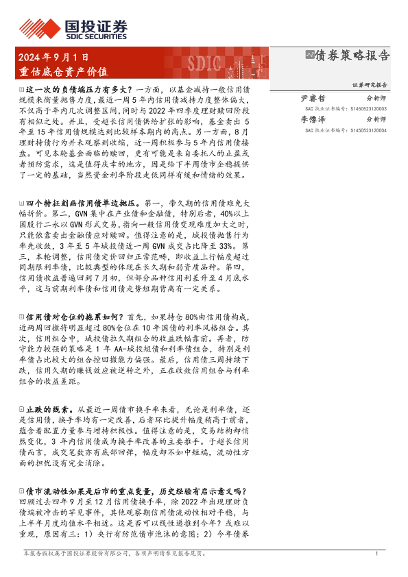 信用债分析 债券策略 市场流动性 投资建议 风险管理