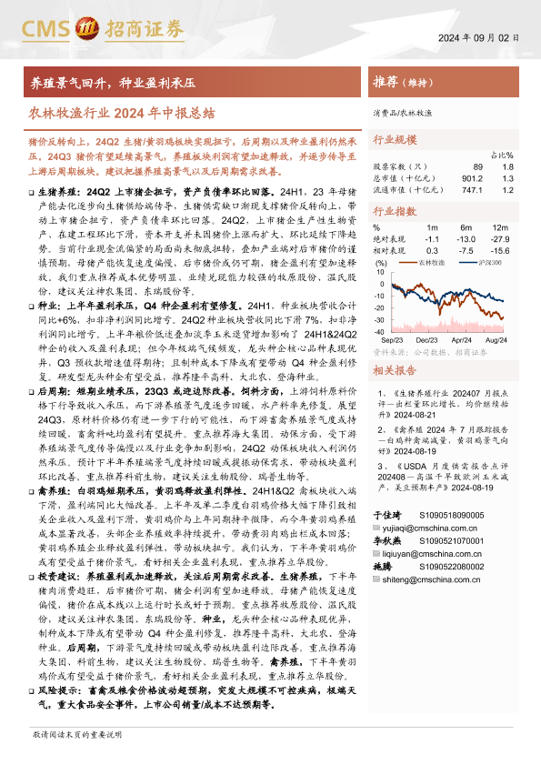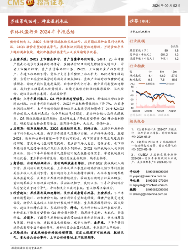 【海通证券】【20240902】农林牧渔行业2024年中报总结:养殖景气回升,种业盈利承压-22页