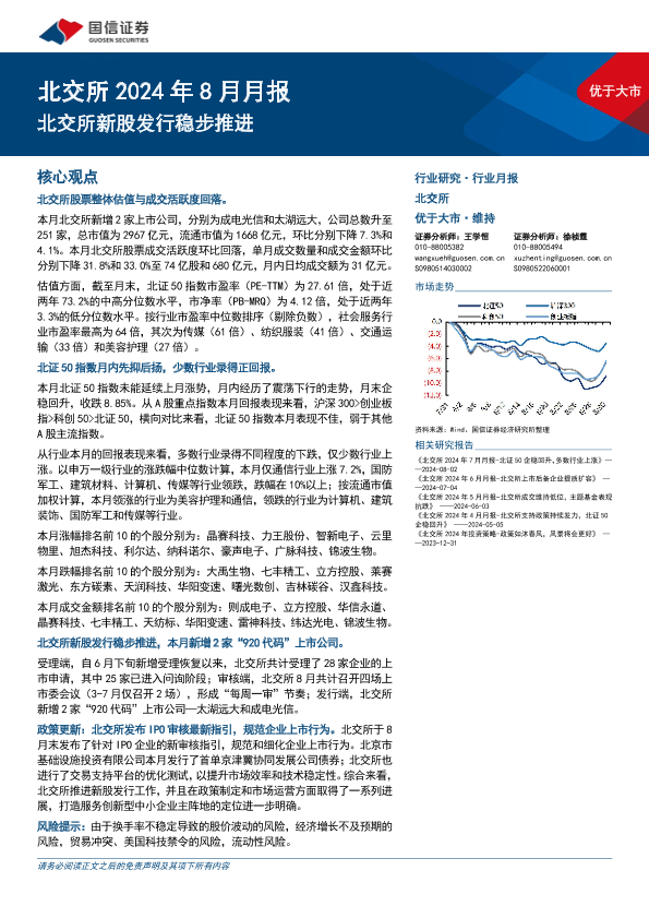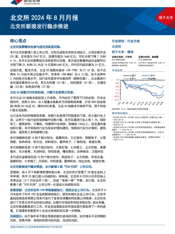 【国信证券】【20240903】北交所2024年8月月报:北交所新股发行稳步推进-21页
