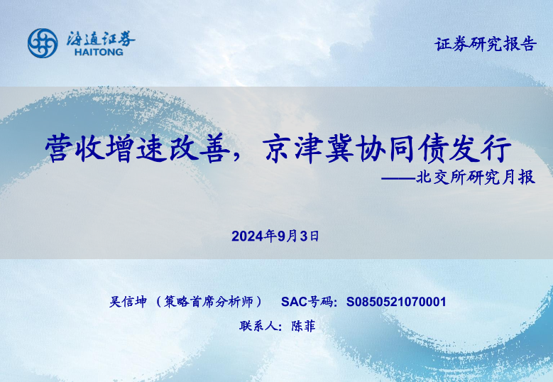 【海通证券】【20240903】北交所研究月报:营收增速改善,京津冀协同债发行-30页