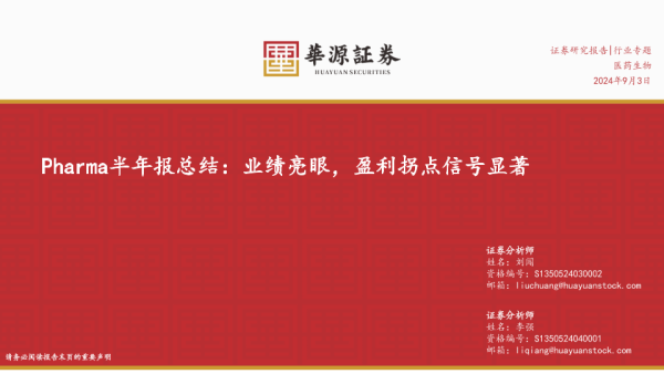 【华源证券】【20240903】医药生物行业Pharma半年报总结:业绩亮眼,盈利拐点信号显著-42页