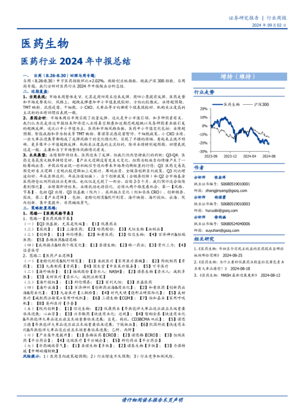 业绩分析 中报总结 市场展望 投资策略 医药行业