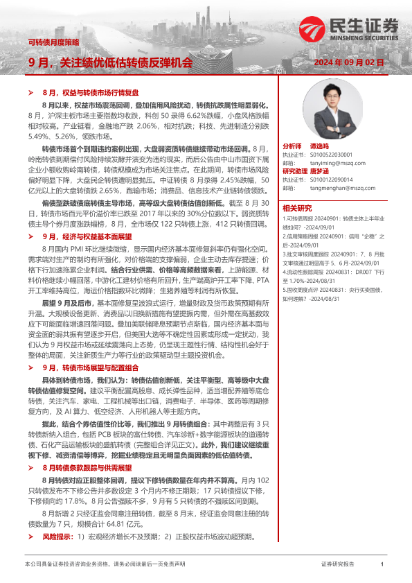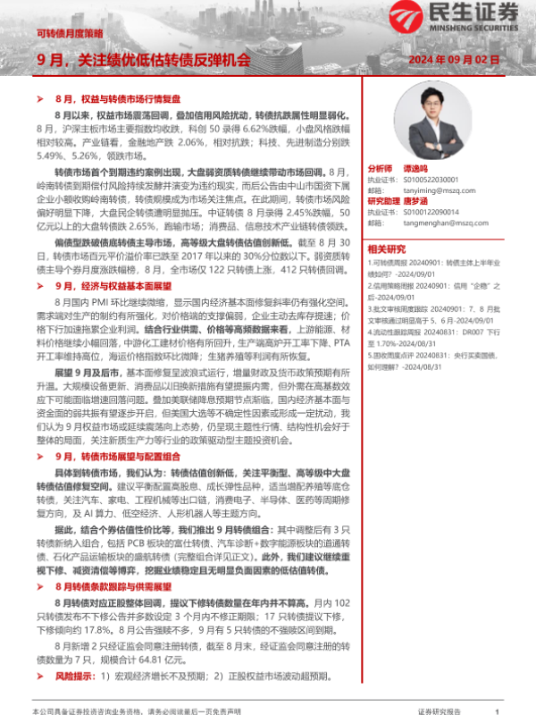 【民生证券】【20240902】可转债月度策略:9月,关注绩优低估转债反弹机会-28页