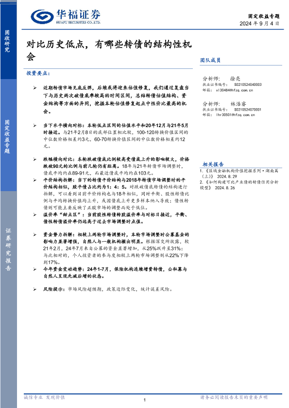 【华福证券】【20240904】固定收益专题:对比历史低点,有哪些转债的结构性机会-10页