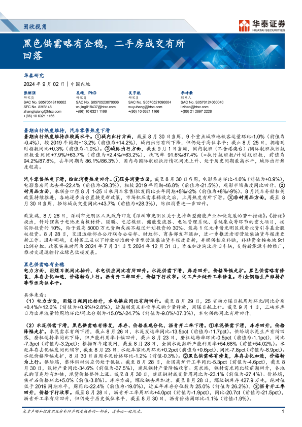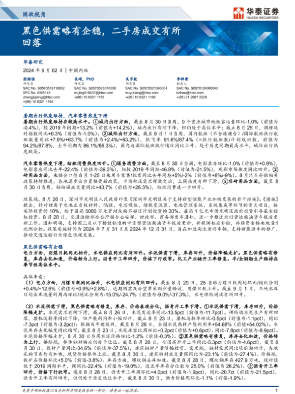 【华泰证券】【20240902】固收视角:黑色供需略有企稳,二手房成交有所回落-13页