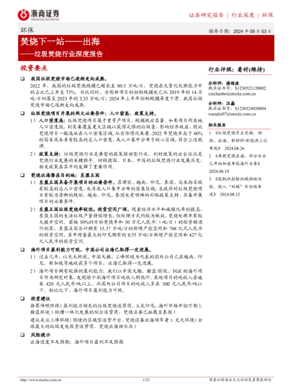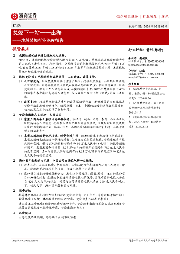 【浙商证券】【20240903】垃圾焚烧行业深度报告:焚烧下一站——出海-22页