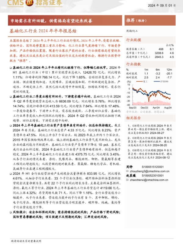 【海通证券】【20240901】基础化工行业2024年半年报总结:市场需求有所回暖,供需格局有望迎来改善-17页