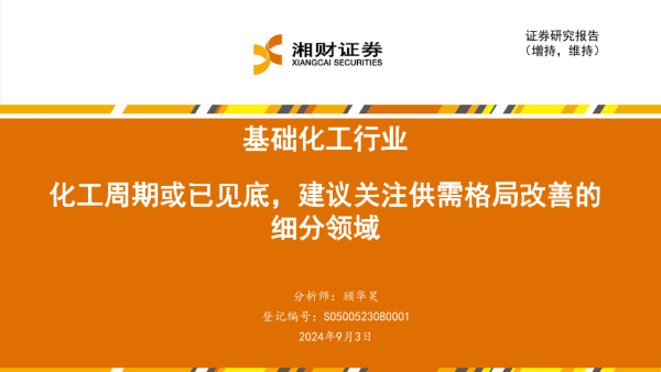 【湘财证券】【20240903】基础化工行业:化工周期或已见底,建议关注供需格局改善的细分领域-35页