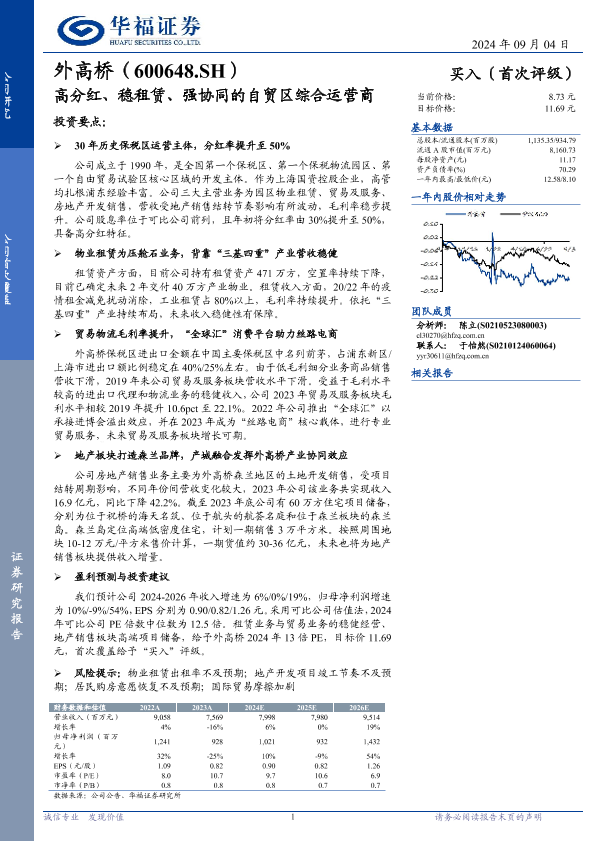 【华福证券】【20240904】外高桥(600648)高分红、稳租赁、强协同的自贸区综合运营商-22页