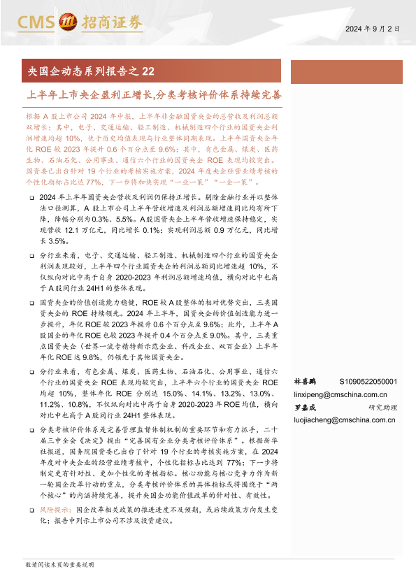 【海通证券】【20240902】上半年上市央企盈利正增长,分类考核评价体系持续完善-31页