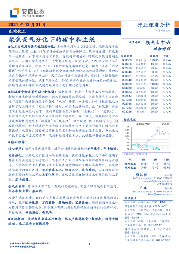【安信证券】【20211231】基础化工行业深度分析:聚焦景气分化下的碳中和主线-40页