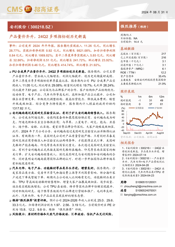 【海通证券】【20240901】安利股份(300218)产品量价齐升,24Q2多项指标创历史新高-18页