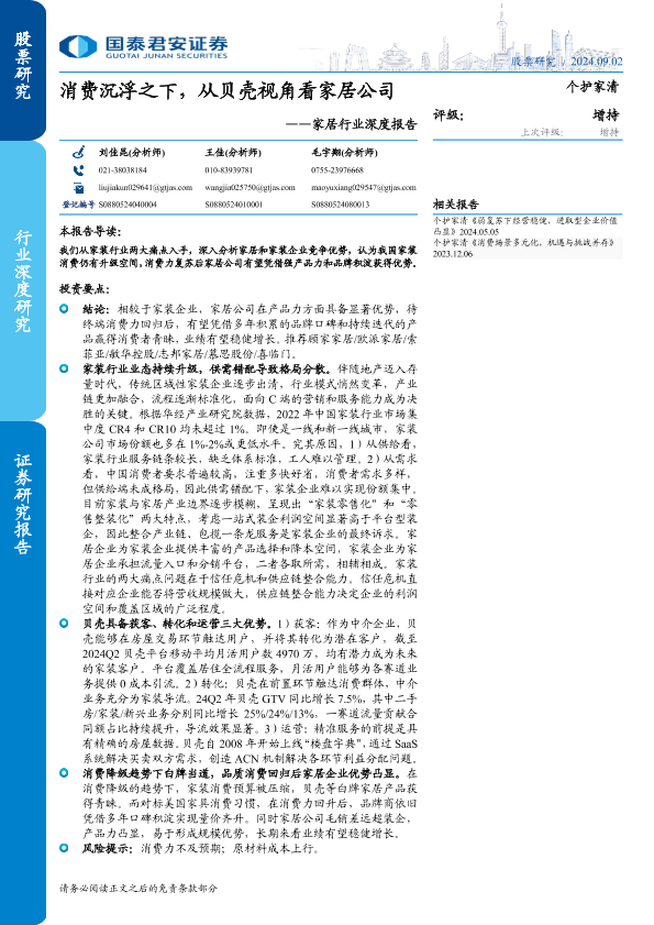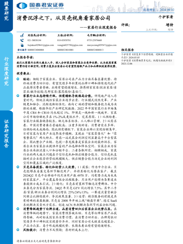 【国泰君安证券】【20240902】家居行业深度报告:消费沉浮之下,从贝壳视角看家居公司-33页